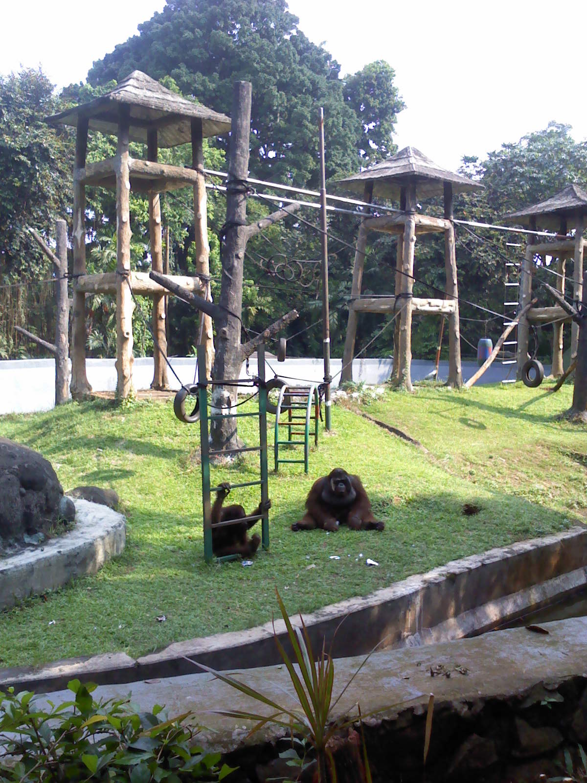 Foto yang disamping itu adalah ungko (kalau gue gak salah). Begitu turun dari jembatan yang ada si Komu, kami disambut sama Owa jawa yang lagi ribut banget. Jalan sedikit barulah ketemu ungko yang lagi gelantungan kaya foto disamping. Kasian sih liatnya abis dia diem aja, gak respon apa-apa padahal temennya yang lain rame melihat kedatangan manusia. Entah dia lapar atau karena dia sakit gue juga gak ngerti. Atau emang pingin diem. Pokoknya tuh satwa cuma diem.