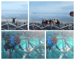 Hari pertama ini agak panik ya karena masih penyesuaian pake snorkle dan gimana supaya bisa mantap gitu ‘berenang’ nya.