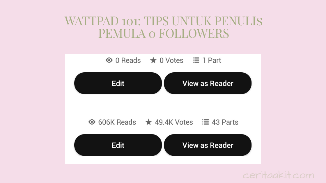 Gue sering banget baca menfess insecure. Sehari ada kali 10x. Gini, percaya diri aja dulu kalau mau publish di wp. Kalau belum publish udah takut ini itu… kapan mau mulainya? Semua itu butuh proses. Baru publishsatu part terus berharap dapat ribuan pembaca itu impossible, apalagi kalau enggak punya followers. Kebanyakan pembaca itu datang pas part udah banyak. Asal kamu pasang tag yang benar dan promosi, nanti cerita kamu akan nemu pembacanya sendiri.